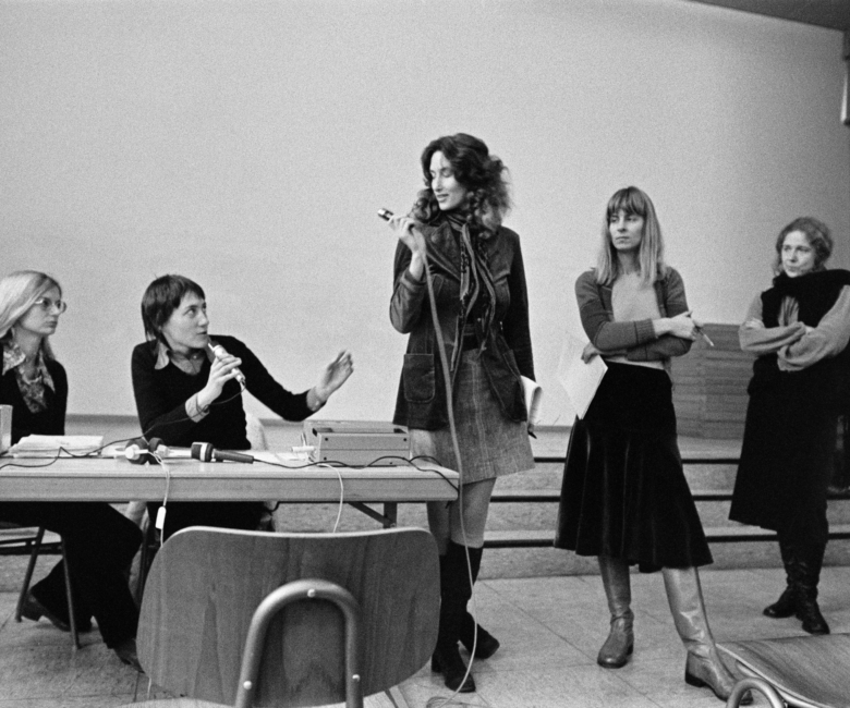 Filmmaker Vibeke Løkkeberg returns to the First International Women’s Film Seminar, organised in Berlin in 1973 by Claudia von Alemann and Helke Sander, one of the very first feminist film festivals. Nearly fifty years later, she uncovers long-lost sound and image material and transforms it into a cinematic journey through conversations, encounters, and moments of collective attention.