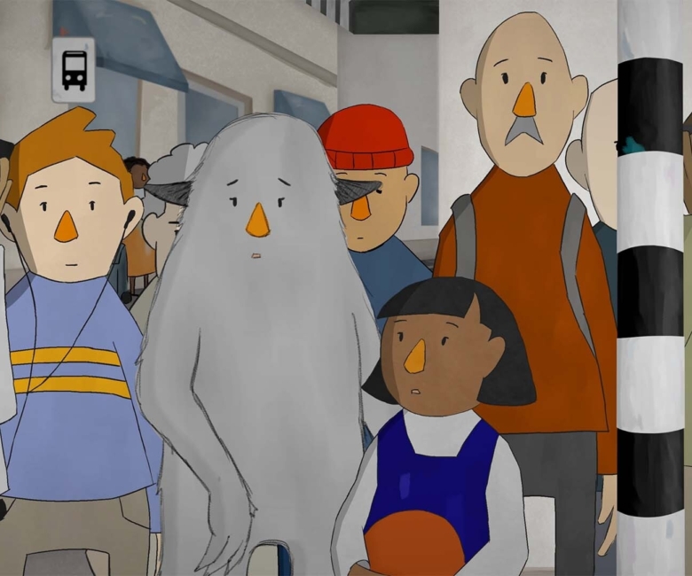 Een meisje probeert contact te krijgen met haar zus, die bedekt is met een rare grijze vacht. Het is zacht en griezelig tegelijk. Het groeit tussen hen in en drijft ze verder uit elkaar.